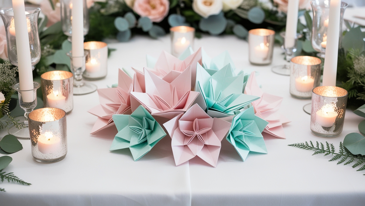 Origami adds a soft, whimsical touch to baby showers. Think soft colors and symbolic shapes.