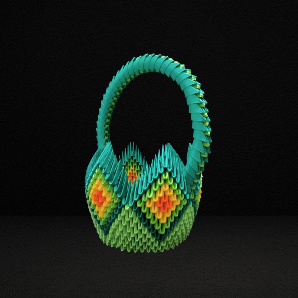 Bring color and artistic craftsmanship into your space with the Tropical Diamond 3D Origami Basket with Handle. This beautifully handcrafted decorative basket is created using modular origami techniques, transforming carefully folded paper units into a visually striking three-dimensional design.