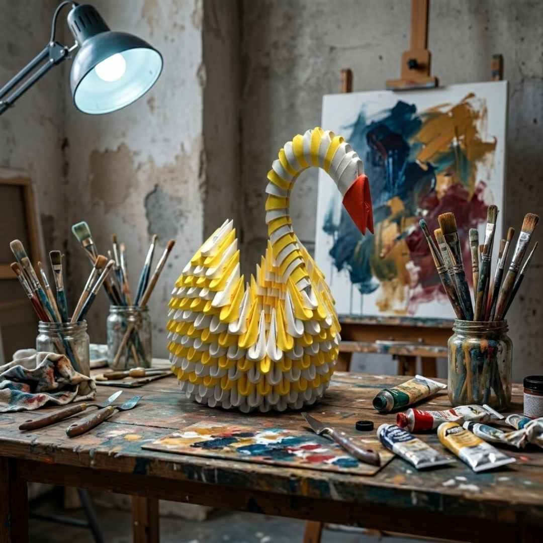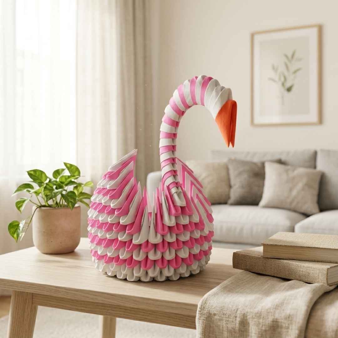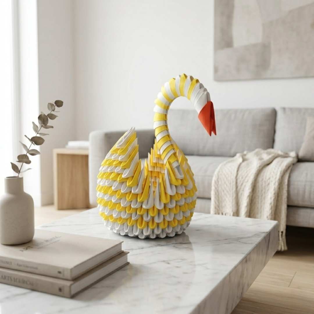 Enhance your space with the Vibrant 3D Origami Swan, a beautifully handcrafted decorative piece inspired by traditional paper-folding artistry. Designed using modular origami techniques, this sculpture transforms simple paper into an elegant three-dimensional swan that symbolizes grace, creativity, and artistic craftsmanship.